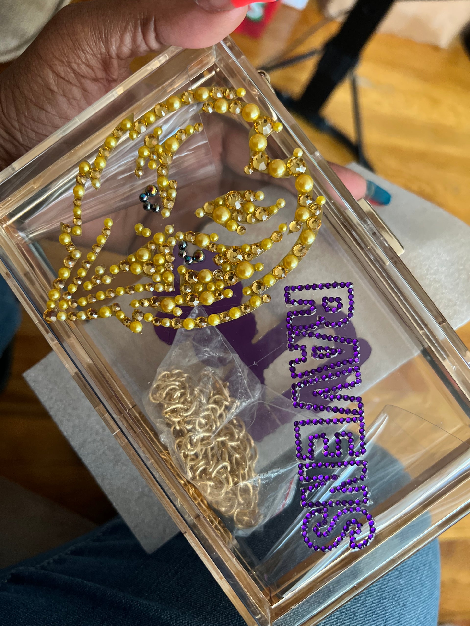 Meet your must-have event accessory: the Custom Bling Stadium/Event Purse, designed to keep you stylish and compliant with venue bag policies. Whether you’re headed to a concert, sports game, or festival — this bag has your back in every sparkling way!