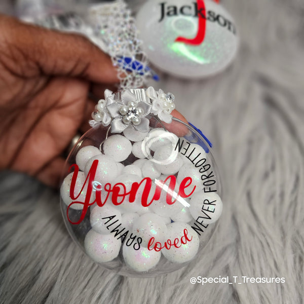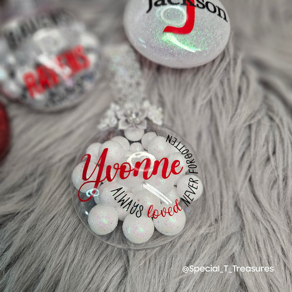 Enhance your holiday decorations with our personalized Christmas ornaments! Each piece is meticulously handcrafted and customized with your choice of names, dates, or special messages, making every ornament truly unique. Crafted from premium materials, these keepsakes are ideal gifts for family and friends. Whether marking a memorable occasion, celebrating a first Christmas, or creating lasting memories, these ornaments add a heartfelt touch to any tree. Order now to bring a distinctive festive charm that loved ones will treasure for years!